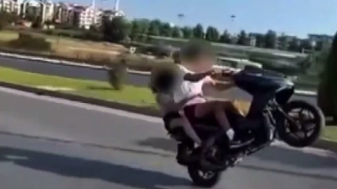 Sürücünün motosikletiyle yaptığı tehlikeli hareketler cep telefonu kamerasıyla görüntülendi.