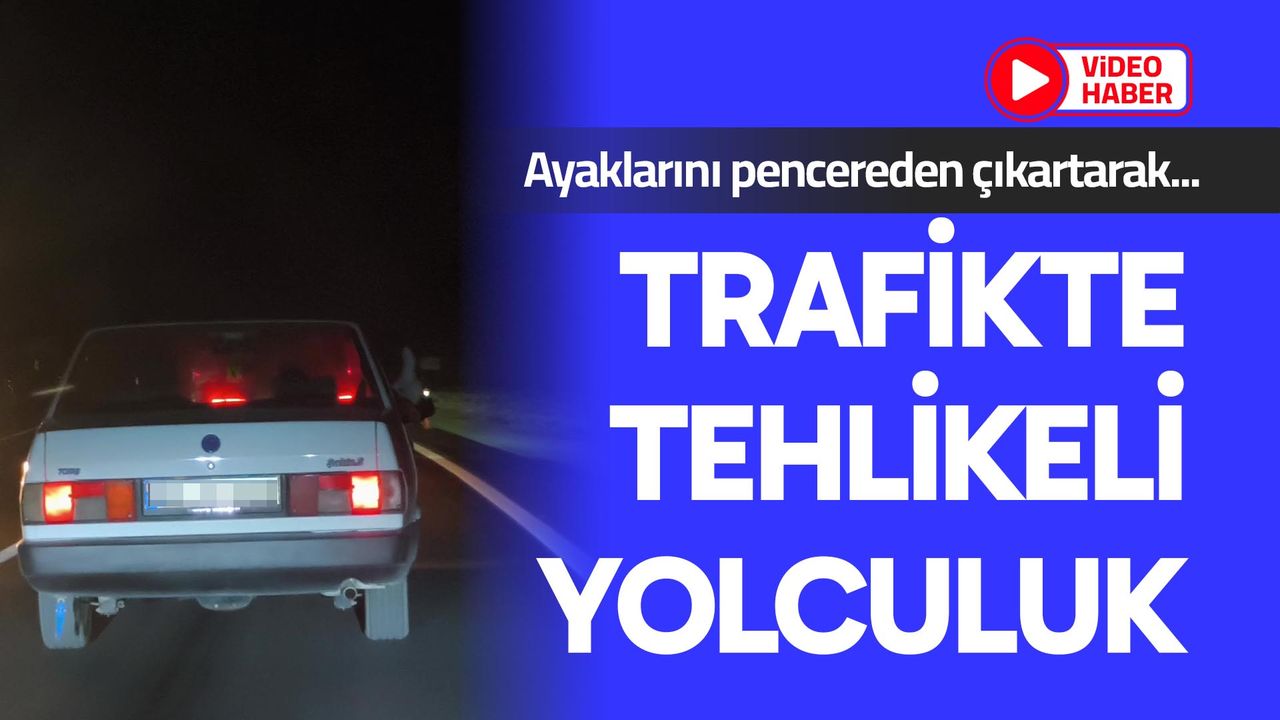 Denizli Haber - Denizli- Antalya kara yolunda kent merkezi istikametinde seyir halinde olan otomobilde bulunan yolcunun tehlikeli hareketi, cep telefonu kamerasıyla kaydedildi. Zaman zaman süratini arttıran otomobilin ön yolcu koltuğunda oturan vatandaş, iki ayağını da dışarıya çıkartarak kilometrelerce yol yolculuk yaptı. Ayağıyla aynayı kapatıp sürücünün geriyi görmesini engellemesine rağmen dakikalarca seyir eden otomobildeki yolcunun kendi canını da hiçe saydığı görüldü.