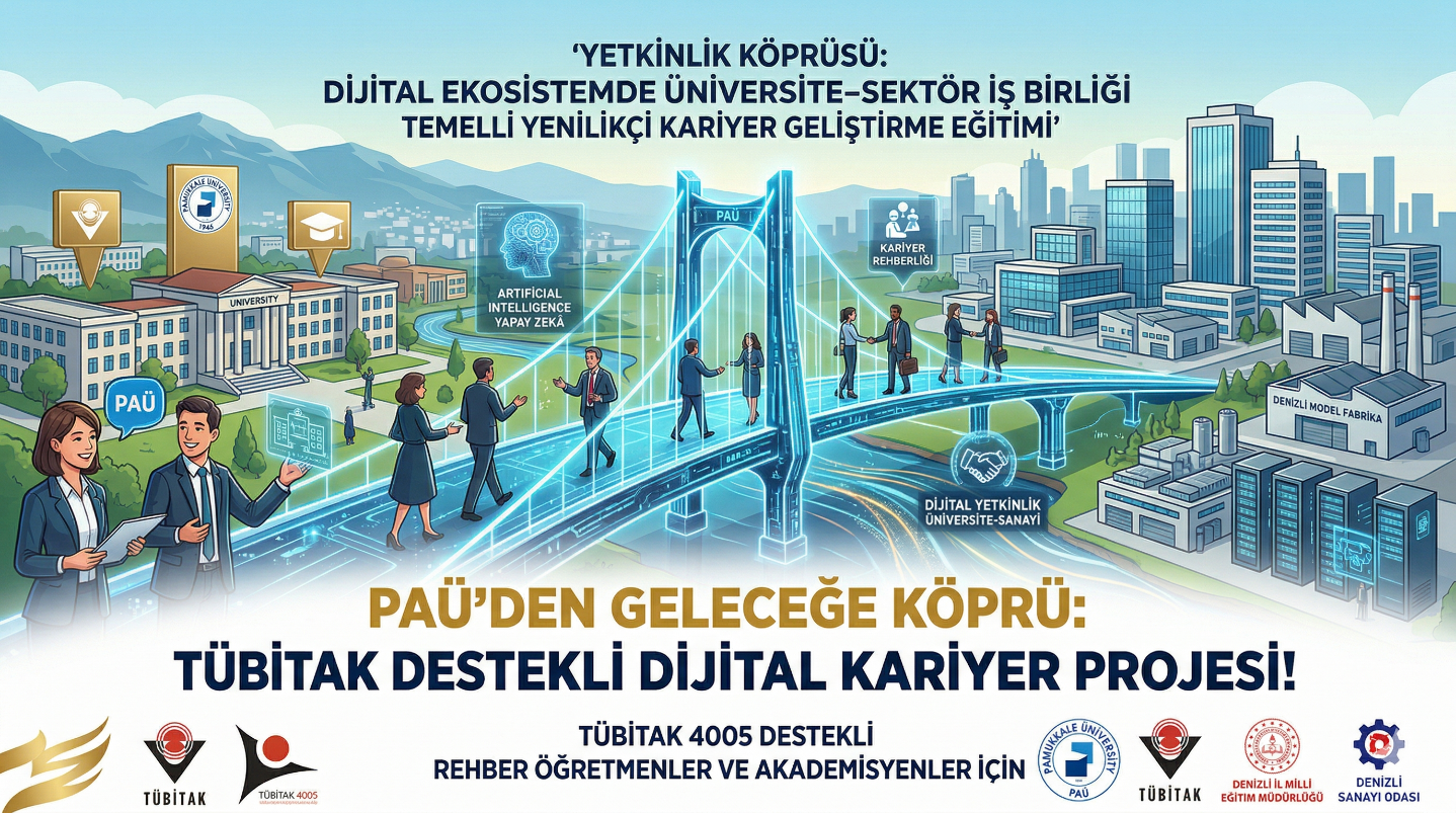 Denizli Haber - Pamukkale Üniversitesi Kariyer Planlama, Uygulama ve Araştırma Merkezi (PAÜ KARMER) koordinasyonunda hazırlanan “Yetkinlik Köprüsü: Dijital Ekosistemde Üniversite–Sektör İş Birliği Temelli Yenilikçi Kariyer Geliştirme Eğitimi” başlıklı proje, TÜBİTAK 4005 Yenilikçi Eğitim Uygulamaları Destekleme Programı kapsamında kabul edildi. Türkiye genelinde yapılan 260 başvuru arasından seçilerek büyük bir başarıya imza atan proje; PAÜ Kariyer Planlama, Uygulama ve Araştırma Merkezi Müdürü Dr. Öğr. Üyesi Bilal Göde’nin yürütücülüğünde, Denizli İl Millî Eğitim Müdürlüğü ve Denizli Sanayi Odası’nın güçlü iş birliğiyle hayata geçirilecek.