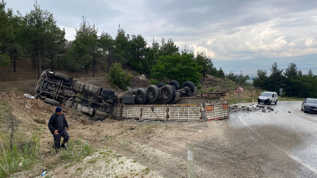 Gündem Haber - Kaza, Burdur-Isparta Dostluk yolu üzerinde meydana geldi. Edinilen bilgilere göre, sürücüsü öğrenilemeyen tuğla yüklü tır, viraja geldiği esnada yağış sebebiyle kayganlaşan yolda kontrolden çıkarak şarampole devrildi. Tır içinden kendi imkanlarıyla çıkan sürücü ise kazayı şans ederi yara almadan atlattı.