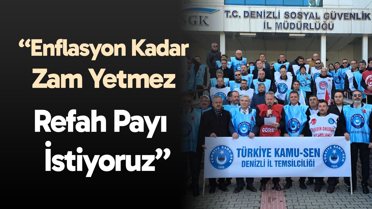 Denizli Haber - Sendika Üyeleriyle birlikte Denizli Sosyal Sigortalar Kurumu önünde basın açıklaması yapan Türkiye Kamu Sen Denizli İl Temsilcisi ve Türk Eğitim Sen (TES) Şube Başkanı Emre Erdoğan, “Sadece maaşların düşük değil, ücretlerin kendi içinde de adalet barındırmadığını belirterek, “Soğuk bir kış gününde, milyonlarca kamu çalışanı ve emeklinin sesi olmak üzere çağrımıza kulak vererek burada toplandığınız için hepinize ayrı ayrı teşekkür ediyorum. Kamu çalışanlarının ve emeklilerinin alım gücü her geçen gün biraz daha erimekte, geçim şartları sürdürülemez hâle gelmektedir. 2025 yılına ait enflasyon verilerinin açıklanmasıyla birlikte memur ve emeklilerin maaş artışlarının, gerçek hayat şartları karşısında ne denli yetersiz kaldığı bir kez daha net biçimde ortaya çıkmıştır. Resmî verilere göre 2025 yılı enflasyonu yüzde 30,89 olarak gerçekleşmiştir. Buna karşın memur maaşlarına yapılan artış yıl içinde yüzde 22,5 seviyesinde kalmıştır. Sonuç açıktır: Enflasyon yükselmiş, maaşlar erimiştir. Ne yazık ki bu tablo, memur ve emekliler açısından artık istisnai değil, alışılagelmiş bir durum olmuştur. Nitekim 2024 yılında da maaşlar enflasyonun 15,37 puan gerisinde kalmış; 2025 yılında ise toplamda 18,53 puanlık bir kayıp yaşanmış, bu kayıp ancak sonradan verilen enflasyon farkı ile telafi edilmeye çalışılmıştır. Buradan bir kere daha açıkça ifade ediyoruz:Enflasyon farkı, zam değildir. Enflasyon farkı, maaşları yalnızca gerçekleşen enflasyona eşitleyen bir telafi ödemesidir. Zam ise maaşın alım gücünü artırması beklenen bir düzenlemedir. Son yıllarda maaş artışlarının sürekli olarak enflasyonun altında kalması, yapılan düzenlemeleri zam olmaktan çıkarmıştır. Bugün gelinen noktada memur maaşları, adeta ön ödemeli enflasyon farkı sistemiyle belirlenmektedir” dedi.