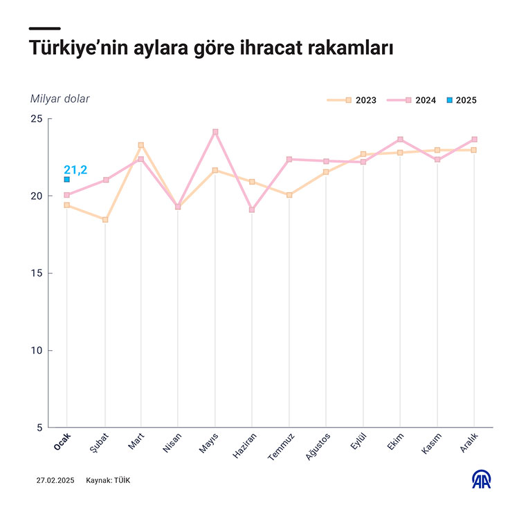 Türkiye İstatistik Kurumu (TÜİK) ve Ticaret Bakanlığı işbirliğiyle oluşturulan ocak ayına ilişkin geçici dış ticaret verileri açıklandı.