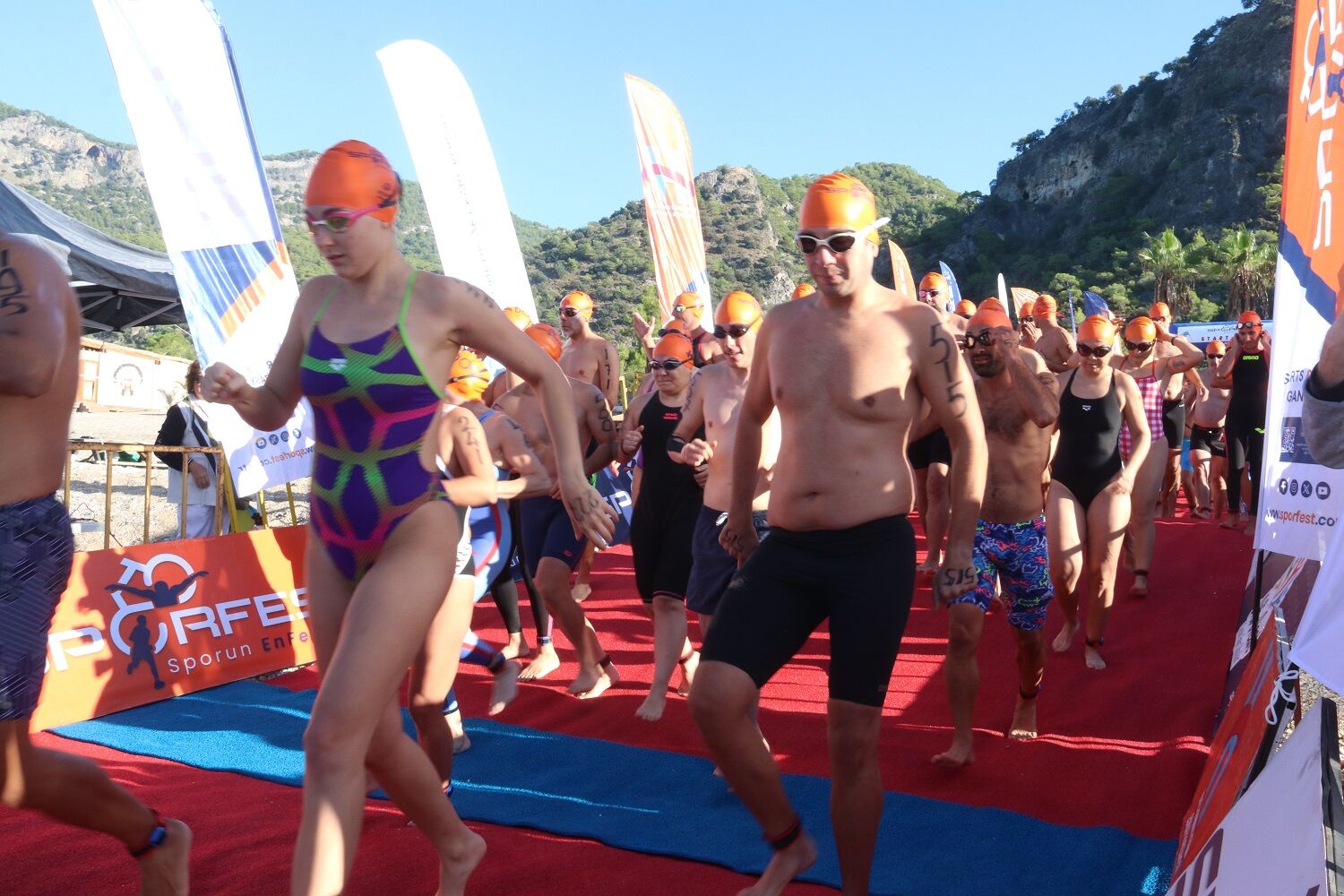 Spor Haber - Fethiye Sporfest'e Manş Denizi'ni geçen ilk Türk yüzücü olan ve geçtiğimiz günlerde Japonya'da 'Okyanus Yedilisi'ni de tamamlayan Bengisu Avcı da katıldı. Ölüdeniz Kumburnu Tabiat Parkı'nda gerçekleşen Fethiye Sporfest Yüzme Yarışları'nın startını Gençlik ve Spor İlçe Müdürü Harun Reşit Yiğit verirken, Fethiye Gençlik ve Spor İlçe Müdürlüğü tarafından düzenlenen festivalin ilk gün yapılan yüzme yarışlarında 4 kategoride bin 480 sporcu mücadele etti. Değişik kategorilerde kıyasıya mücadele eden yarışmacılar, heyecan dolu anlar yaşattı. Uluslararası Fethiye Sporfest'in ilk gün yarışları büyük çekişmeye sahne oldu. Güneşli ve güzel bir havada Ölüdeniz'in masmavi sularında kulaç atan yarışmacılar büyük heyecan yaşadılar. Organizasyonda 1000 metre erkeklerde Yağız Bekçi, kadınlarda Sıla Pazar birinci oldu. 2000 metre erkeklerde birinciliği Yağız Bekçi, kadınlarda da Aymina Öner kazandı. 3000 metrede ise erkeklerde Rusya'dan Mark Shrom, kadınlarda Nehir Sümer ilk sırada yer aldı.
