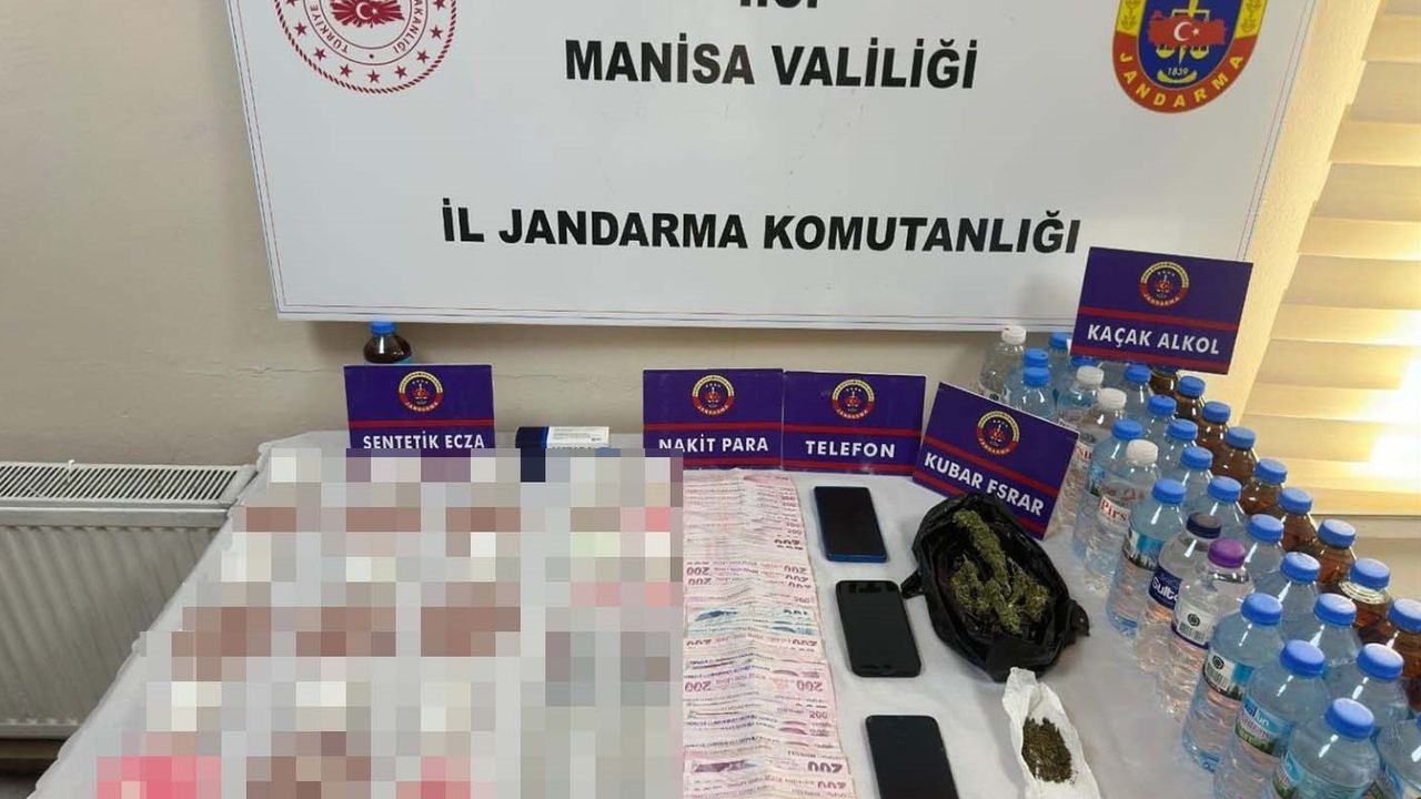 Gündem Haber - Alaşehir İlçe Jandarma Komutanlığına bağlı Jandarma Suç Araştırma Timi (JASAT) ve Merkez Jandarma Karakol Komutanlığı ekipleri, Subaşı Mahallesi’nde H.K. (50-kadın) ve E.D. (32-erkek) isimli şahısların uyuşturucu madde ticareti yaptığı bilgisi üzerine harekete geçti. 14 Mayıs tarihinde şüphelilere ait ev ve iş yerlerinde yapılan aramalarda, 1.076 adet sentetik ecza hapı, 119,6 gram uyuşturucu madde, yaklaşık 20 litre kaçak alkol ve uyuşturucu satışından elde edildiği değerlendirilen 24 bin 800 TL nakit para ele geçirildi.