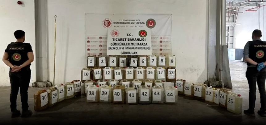 Belirlenen alandan alınan numunenin, el tipi uyuşturucu madde tespit cihazında yapılan test sonucunda metamfetamin olduğu anlaşıldı. Ekipler, 764 kilogram likit metamfetamin türü uyuşturucuya el koydu.