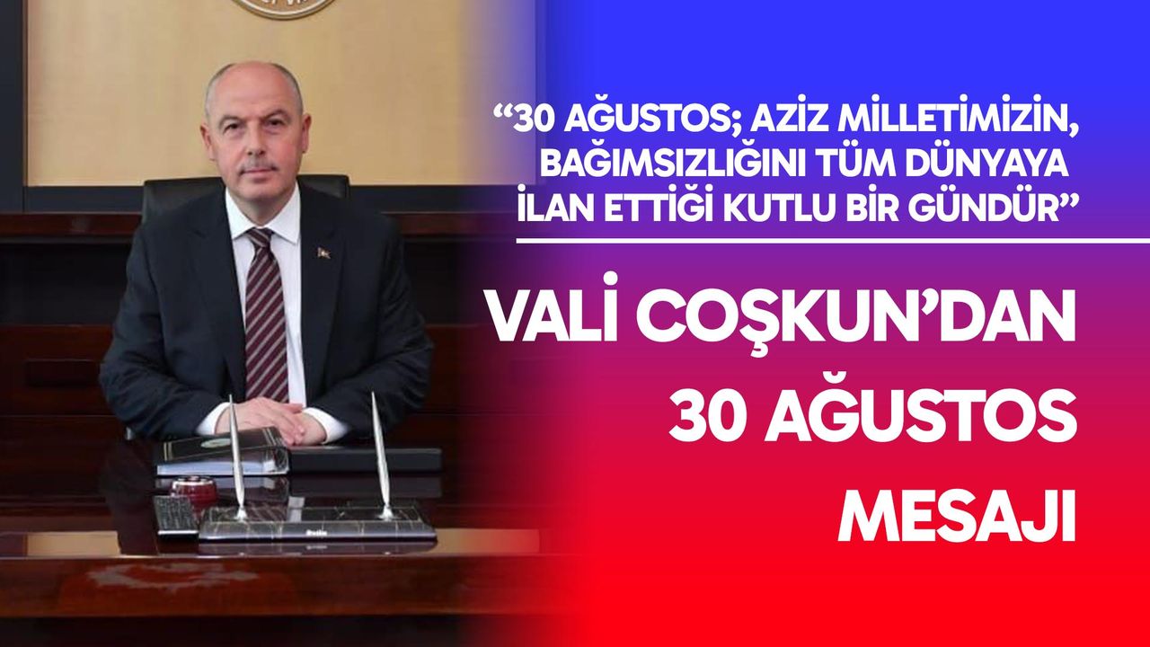 Denizli Haber - Denizli Valisi Coşkun mesajında, "Bugün, şanlı tarihimizin dönüm noktalarından biri olan, aziz milletimizin Gazi Mustafa Kemal Atatürk’ün komutasında vatanı ve bayrağı uğruna verdiği kahramanca mücadeleyi zaferle taçlandırdığı ve Anadolu’yu ebedi yurdumuz olarak bir kez daha tescillediği 30 Ağustos Zaferi’nin 103. yıl dönümünü milletçe büyük bir gurur ve coşkuyla kutluyoruz.