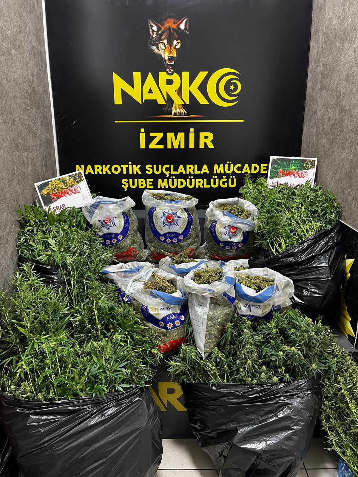 Gündem Haber - Uyuşturucu veya uyarıcı madde ticareti yapan zehir tacirleri tarafından bir villada uyuşturucu madde yetiştirildiği bilgisinin edinilmesi üzerine Aliağa ve Menemen Cumhuriyet Başsavcılıkları koordinesinde Narkotik Suçlarla Mücadele Şube Müdürlüğü tarafından operasyon düzenlendi. Aliağa ve Menemen ilçelerinde bulunan iki farklı adreste yapılan aramada, 212 kök kenevir bitkisi ve 9 kilo 350 gram esrar ele geçirildi. Villanın odalarını kenevir bahçesine dönüştüren 3 kişi yakalandı. Operasyon kapsamında gözaltına alınan (O.G.), (C.A.) ve (İ.G.) isimli şüpheliler, emniyetteki işlemlerin ardından adli makamlara sevk edildi.