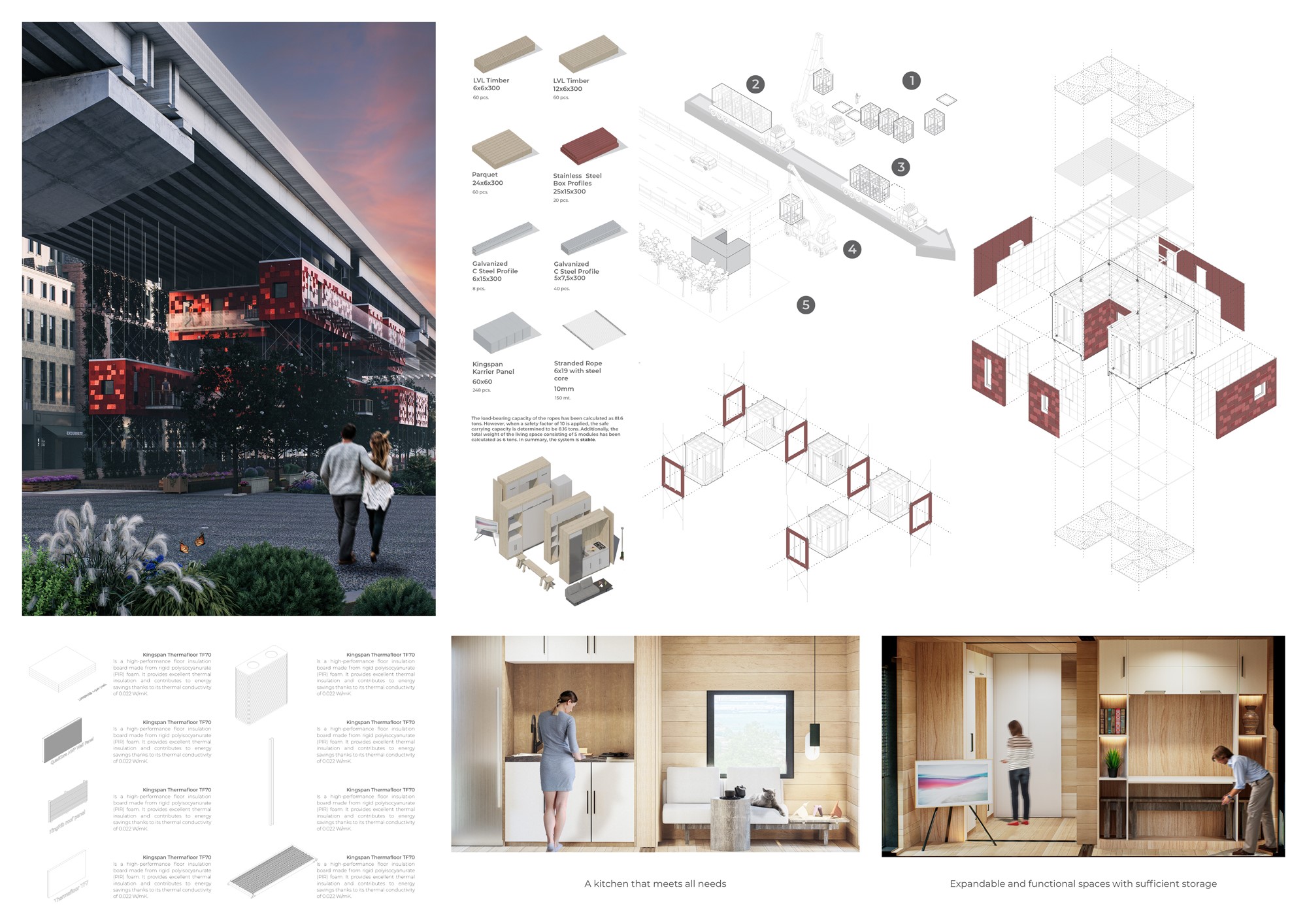 En fazla 25 metrekare alana sahip mikro konut birimleri, şehirlerin enerji altyapısından bağımsız çalışabilecek şekilde tasarlandı. Projede, piezoelektrik modüller ve güneş panelleriyle enerji üretimi sağlanırken, su ihtiyacı yağmur suyu toplama ve gri su dönüşüm sistemleriyle karşılanıyor. Ek olarak, yeşil duvarlar ve atıkların gübreye dönüştüğü biyolojik sistemler sayesinde proje, çevresel sürdürülebilirlik açısından da örnek bir model sunuyor.