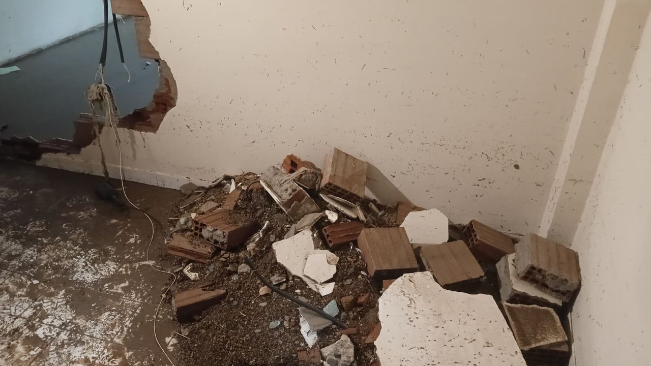 Gündem Haber - Ankara'da dün akşam saatlerinde etkili olan yağış nedeniyle Keçiören ilçesi Adnan Menderes Mahallesi 1071. Sokak'ta bulunan bir binayı su bastı. Binanın içine dolan su bir dairenin iç ve dış duvarlarını yıktı. Duvarı yıkılan bina ve yan binalarda da maddi hasar meydana geldi. Günün ağarmasıyla hasarın bilançosu ortaya çıktı. Su basan dairede maddi hasar meydana gelirken, kullanılmaz hale geldi. Ekiplerin olay yerinde çalışmaları ise devam ediyor.