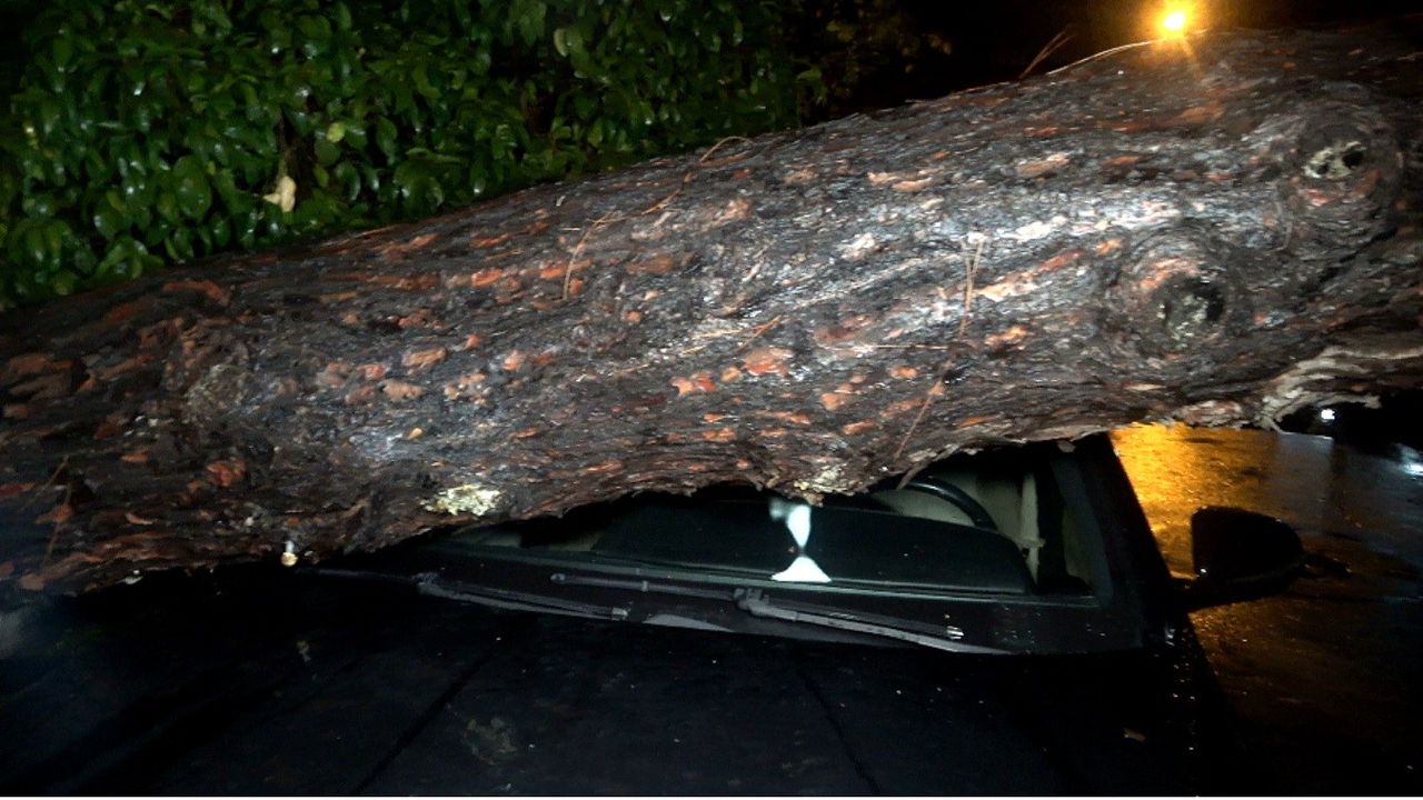 Sarı alarm verilen Antalya'da etkili olan yağış ve şiddetli rüzgar daha önce şikayet edildiği iddia edilen ağacın devrilmesine yol açtı. Olayda iki araç ve bir binada hasar oluşurken şans eseri kimse yaralanmadı.
