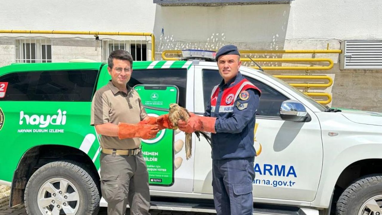Kilis'in Bozcayazı köyünde, jandarma ekipleri tarafından uçamayacak halde bulunan Kızıl Şahin, koruma altına alınarak tedavi için yetkililere teslim edildi.