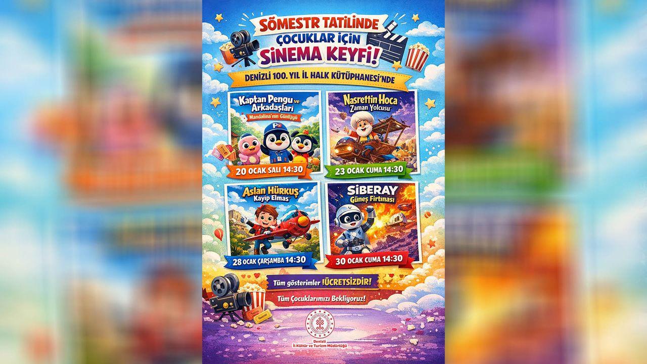 Tüm gösterimler, İstiklal Caddesinde bulunan Denizli İl Kültür ve Turizm Müdürlüğü’ne bağlı Denizli 100. Yıl İl Halk Kütüphanesi’nde gerçekleştirilecek. Denizli İl Kültür ve Turizm Müdürlüğü, düzenlenen etkinliklere 4–12 yaş aralığındaki çocukların velileri eşliğinde katılmalarını isterken yapılan açıklamada, çocukların yarıyıl tatilini verimli, eğlenceli ve öğretici bir şekilde geçirmelerinin amaçlandığı belirtildi. Müdürlük, etkinliklerin hem çocukların gelişimine katkı sunacağını hem de ailelerin kaliteli zaman geçirmesine imkân sağlayacağını vurguladı.