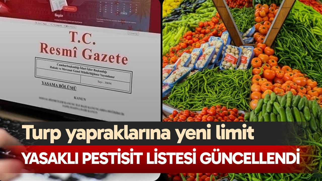 Gündem Haber - Bakanlığın Türk Gıda Kodeksi Pestisitlerin Maksimum Kalıntı Limitleri Yönetmeliğinde Değişiklik Yapılmasına Dair Yönetmeliği Resmi Gazete'de yayımlanarak yürürlüğe girdi.Buna göre, aynı maksimum kalıntı limiti (MRL) uygulanacak benzer ürünler listesine "küçük turp yaprakları" eklendi.