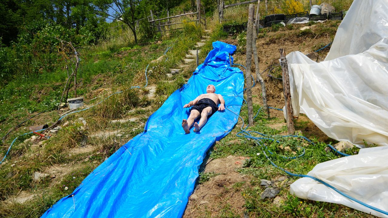 Gündem Haber - İstanbul'da 60 yaşına kadar yaşayan Ergün Saraç, 2020 yılındaki korona virüs pandemisi sebebiyle, ailesi ile birlikte Kastamonu'nun Ağlı ilçesi Kabacı köyü Halil Mahallesi'ndeki evine yerleşti. Köydeki evlerinin bahçesinde çeşitli ürünler yetiştiren Saraç, İstanbul'da yaşayan ve ziyaretlerine gelen torunu için branda kullanarak havuz ve su kaydırağı yaptı. Kendi aquaparkını yapan Saraç, gün içinde bahçede çalıştıktan sonra su kaydırağında kayarak ve havuza girerek serinliyor. Sıcak havanın tadını bahçesindeki havuzda çıkartan Saraç, yaptığı aquaparktaki görüntülerini ise sosyal medyada paylaştı. Viral olan görüntüler, kısa süre içerisine 1,5 milyondan fazla kişi tarafından izlendi.