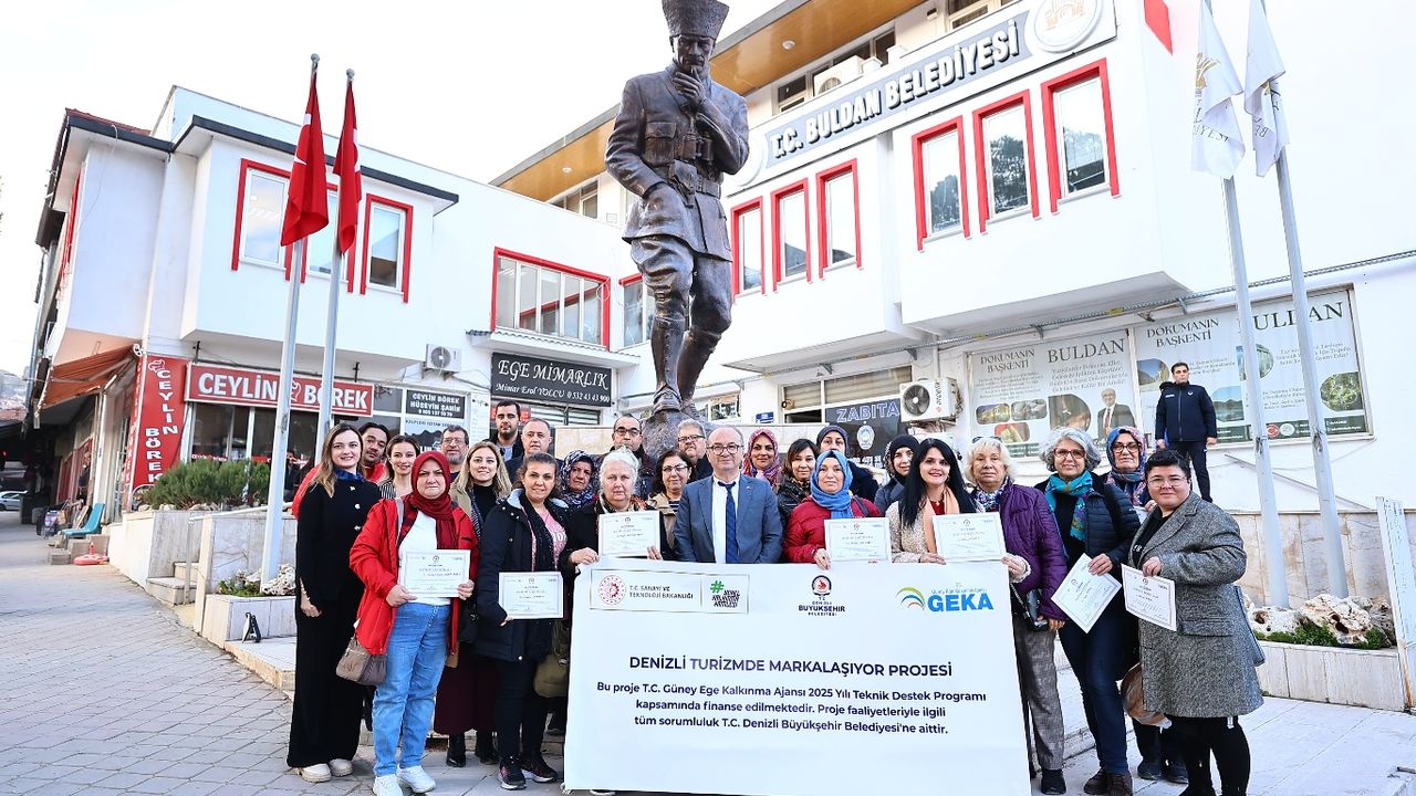 Kent esnafı ile mikro girişimcilerin turizmden aldığı payı artırmayı hedefleyen proje kapsamında, kentin sadece gezilen değil, deneyimlenen bir turizm destinasyonu haline getirilmesi amaçlanırken, verilen eğitimlerle girişimcilerin markalaşma yolculuğuna da önemli bir katkı sağlandı. 5 gün süren eğitim programını başarıyla tamamlayan katılımcılara sertifikaları düzenlenen törenle verildi. Denizli’deki eğitimde sertifikaları Denizli Büyükşehir Belediyesi Başkan Vekili Ali Marım takdim ederken, Buldan’daki katılımcılara sertifikaları Buldan Belediye Başkanı Mehmet Ali Orpak tarafından verildi.