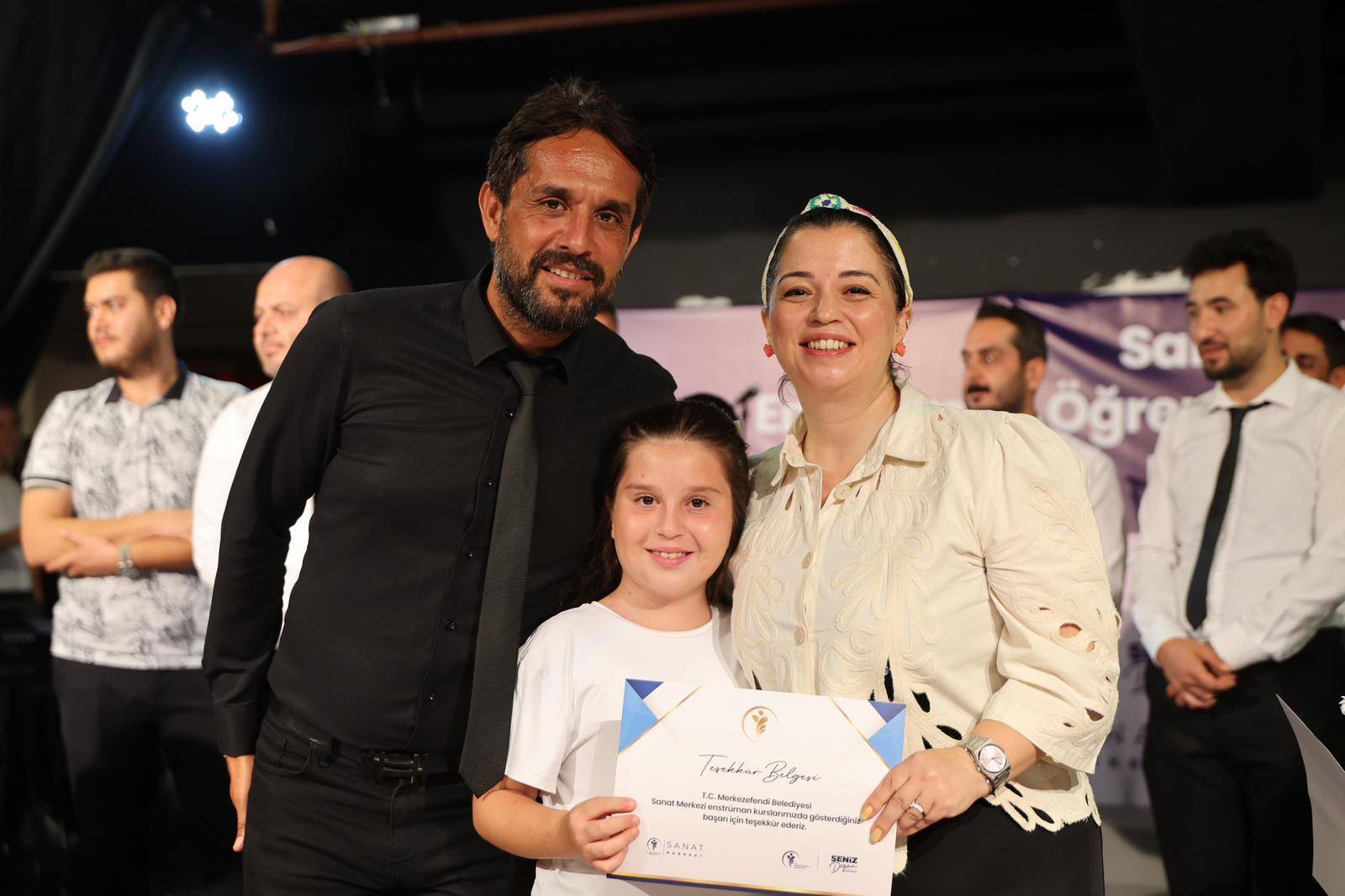 Merkezefendi’de 7’den 70’e hep beraber sanatla yaşadığını belirten Merkezefendi Belediye Başkanı Şeniz Doğan, “Merkezefendi Sanat Merkezimizin yetenekli kursiyerlerinin Yıl Sonu Gösterisi’ni büyük bir mutlulukla gerçekleştirdik.Sahnede sergiledikleri birbirinden güzel performansları, müziğe olan tutkuları ve emekleri için tüm öğrencilerimize ve onlara rehberlik eden değerli eğitmenlerimize teşekkür ediyorum” dedi.