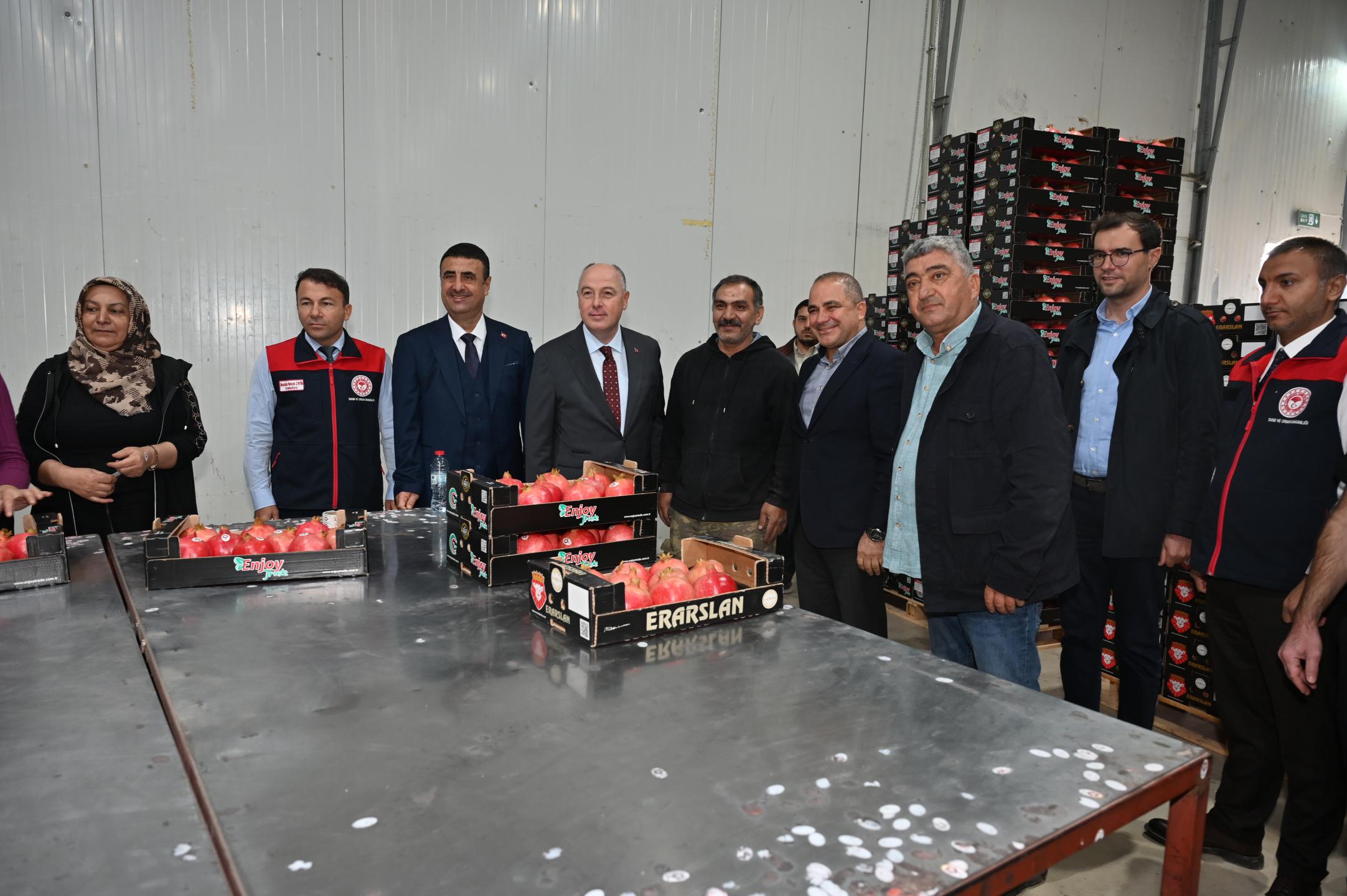 Nar üretim alanını yerinde inceleyen Denizli Valisi Ömer Faruk Coşkun, üretim süreci hakkında yetkililerden bilgi alarak bugün gerçekleştirilen ihracatın ve nar hasadının bütün çiftçilere hayırlı ve bereketli olmasını diledi. Ziyarette; üretim yöntemleri, pazarlama stratejileri ve ihracat süreçlerine dair değerlendirmeler yapıldı.