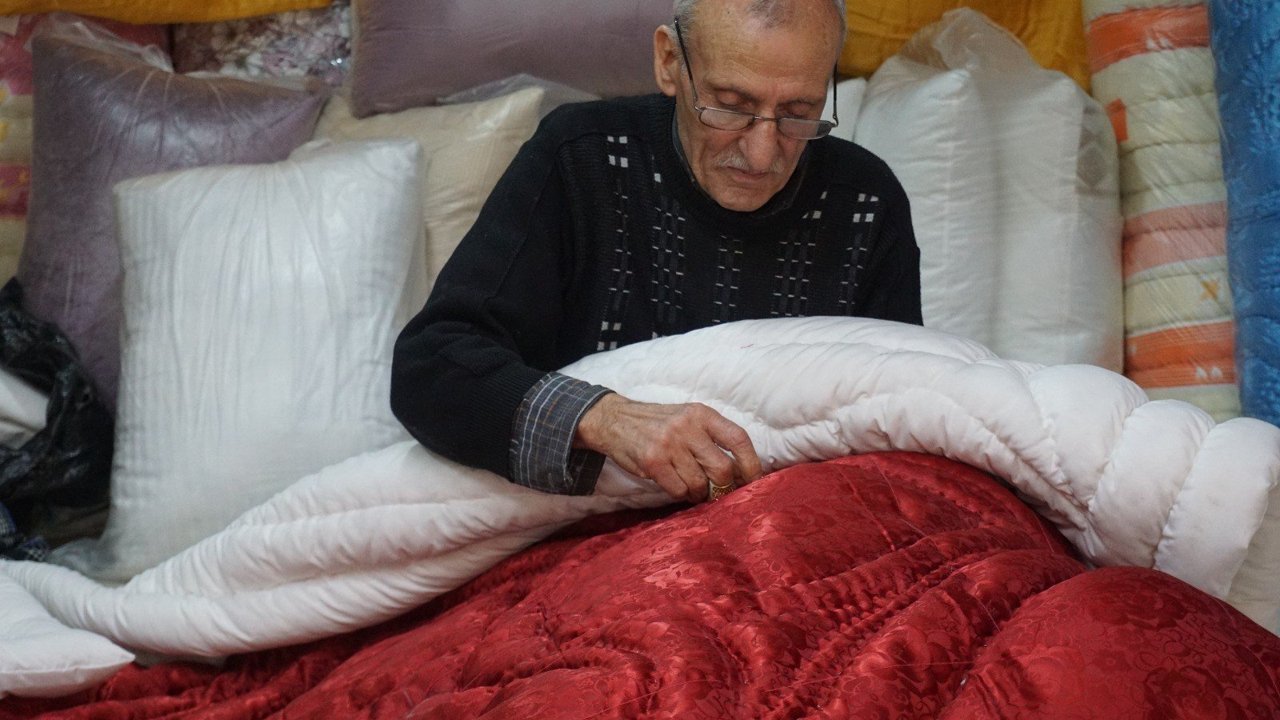 "İyi bir yorganın sırrı, malzemeye duyulan saygıdır" diyen 60 yıllık yorgan dikim ustası Mehmet Pehlivan, mesleği ile ilgili şunları anlattı: