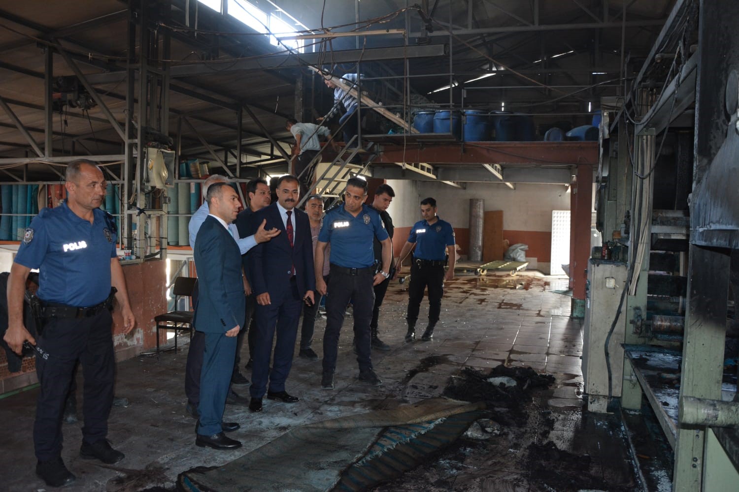 Yangının ardından Demirci Kaymakamı Yavuz Arslan ve Belediye Başkanı Erkan Kara da fabrikayı ziyaret ederek, firma sahiplerine geçmiş olsun temennisinde bulundu.