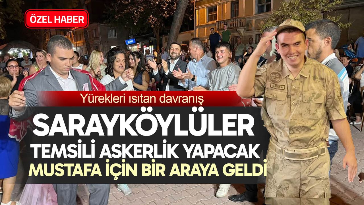 Mustafa Aykuş ile bir fotoğraf çektiren ve Mustafa’nin temsili askerlik görevi için asker eğlencesi düzenleneceği duyuran Başkan Konya, herkesin eğlenceye katılmasını istedi. Başkanın bu çağrı ile harekete geçen ilçe halkı, akşam saatlerinde Mustafa’nın evinin önünde buluştu. Zihinsel engelli Mustafa Aykuş’un evinin önünde düzenlenen asker eğlencesine ise İlçe Kaymakamı İsmail Pendik, Sarayköy Belediye Başkanı Mehmet Salih Konya ve çok sayıda vatandaş katıldı.
