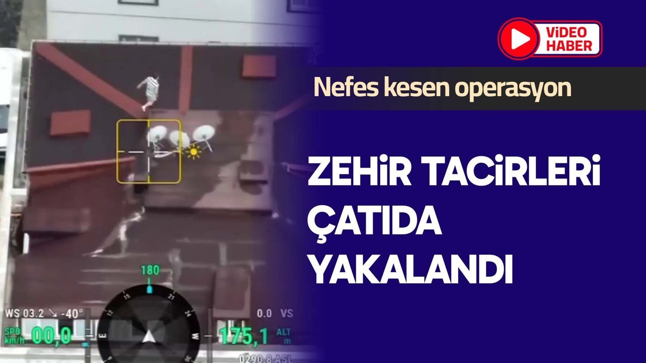 Operasyon anları ise dron ile saniye saniye kaydedildi. Şüphelilerin, uyuşturucu paketlerini pencereden atması ve çatıya kaçmaları, film sahnelerini aratmayan görüntüler oluşturdu.