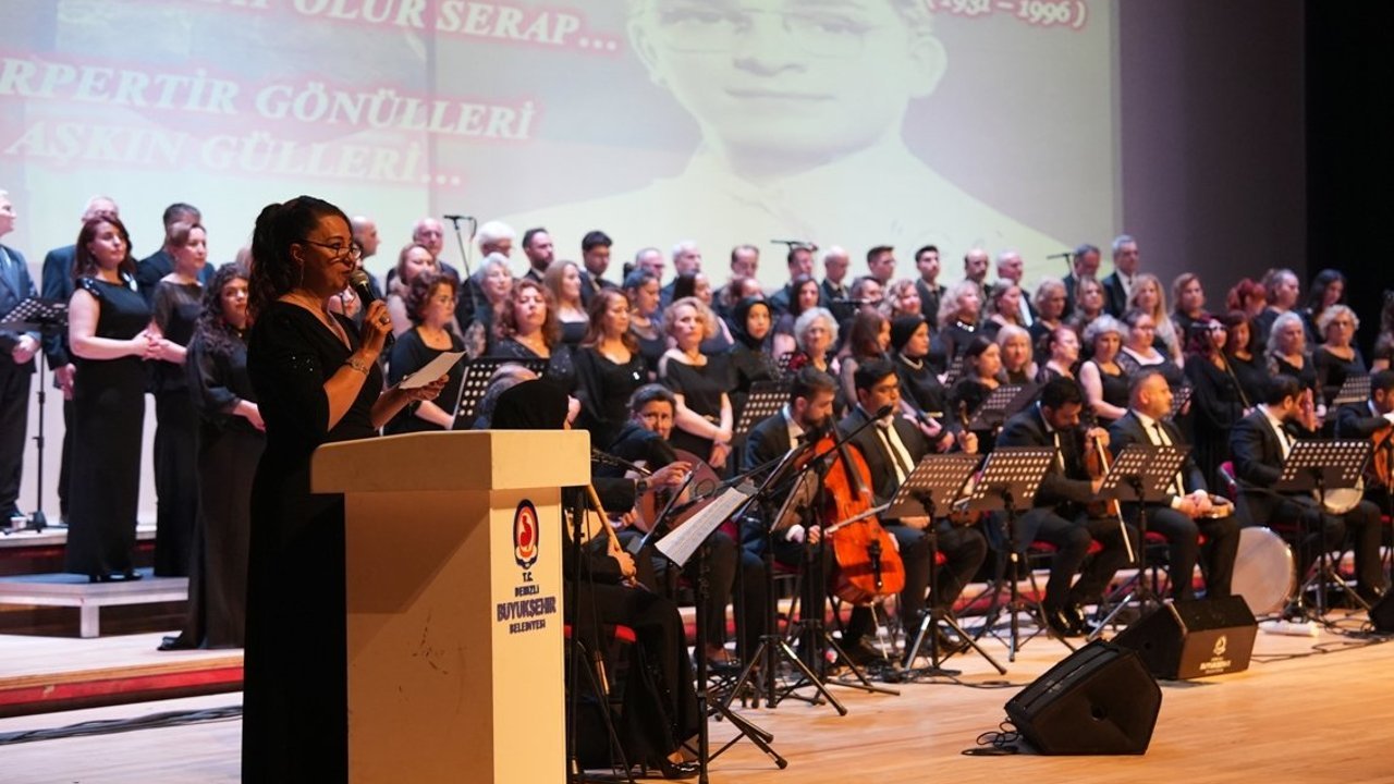 Denizli Haber - “Sanat Şehri Denizli” vizyonuyla çalışmalarını sürdüren Denizli Büyükşehir Belediyesi, Türkiye’nin sanat güneşi Zeki Müren’i unutmadı. Büyükşehir Belediyesi Kongre ve Kültür Merkezi Özay Gönlüm Salonu’nda düzenlenen anma konserine, Denizli Büyükşehir Belediyesi Başkan Vekili Ali Marım, çok sayıda davetli ve sanatsever katıldı. Kültür ve Turizm Bakanlığı İzmir Klasik Türk Müziği Korosu Ses Sanatçısı, Şef Ahmet Nuri Çağdaş yönetimindeki Denizli Büyükşehir Belediyesi Konservatuvarı Türk Sanat Müziği Korosu, hazırladıkları özel repertuvarla dinleyicileri geçmişe götürdü.